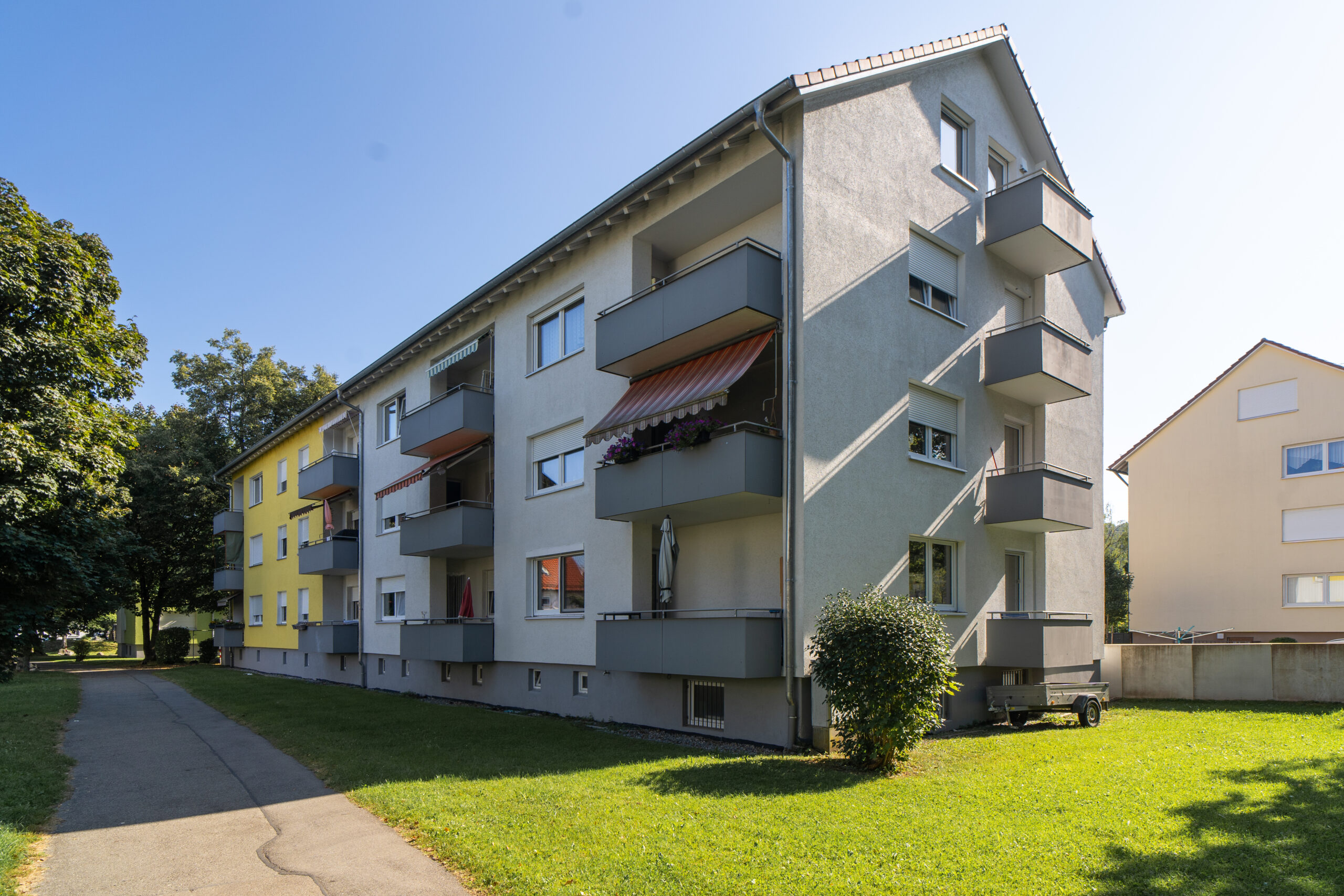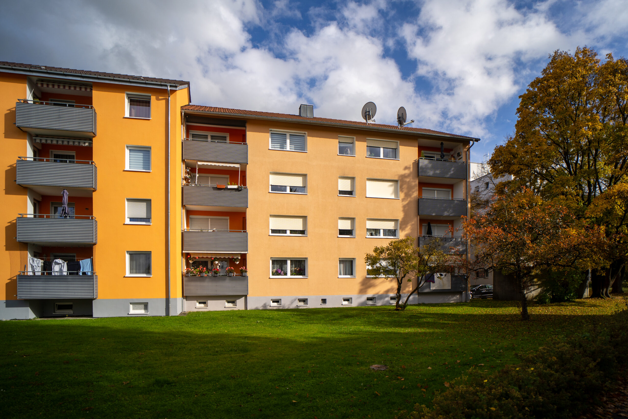 Im Mehrfamilienhaus in der Sandgrabenstr. 97/99 befinden sich 18 Wohneinheiten mit insgesamt 1088 m² Wohnfläche und 8 Garagen.