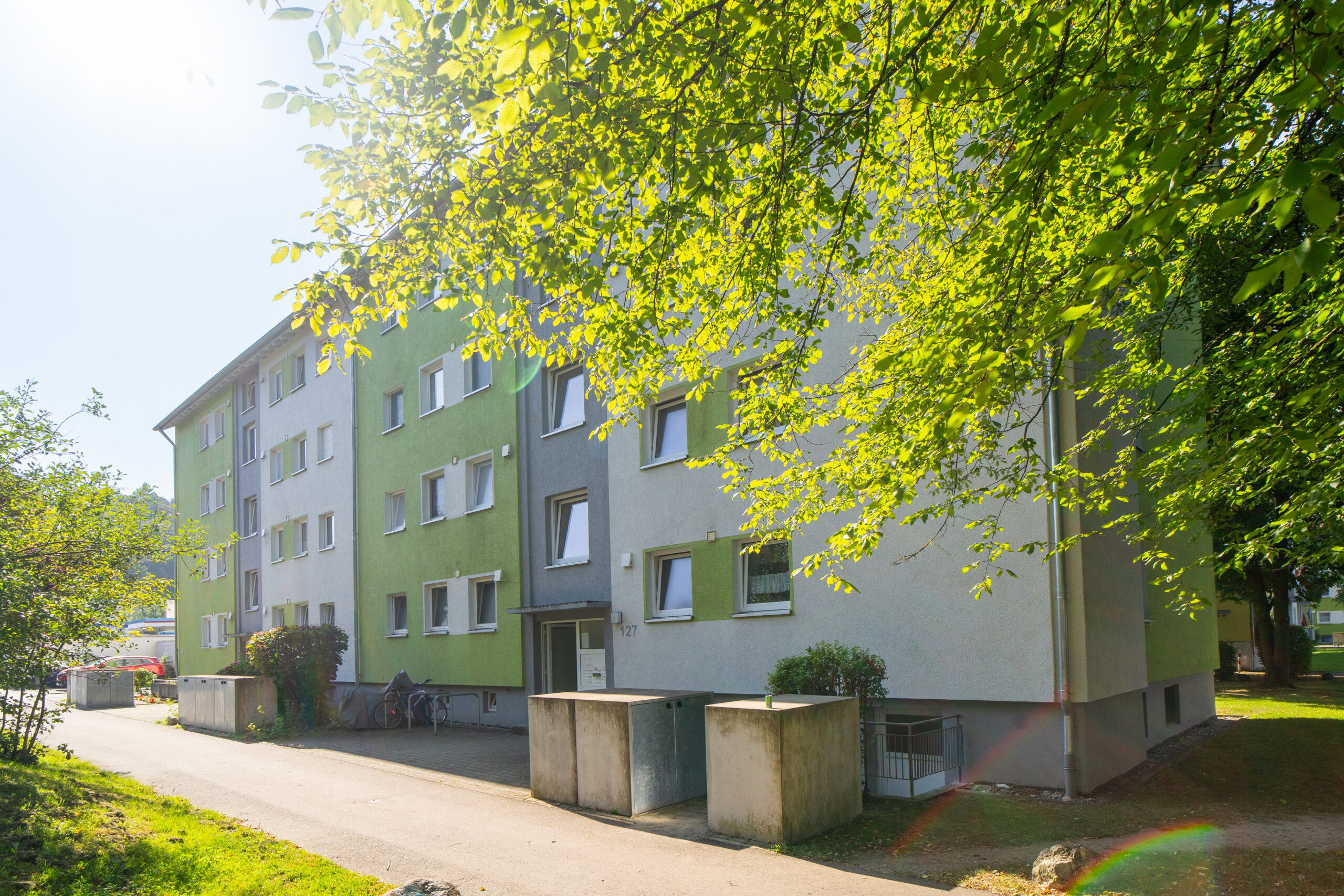 Am Standort Sandgrabenstr. 125/127 befinden sich 18 Wohneinheiten mit insgesamt 1079 m² Wohnfläche, 6 Garagen und Waschplatz.