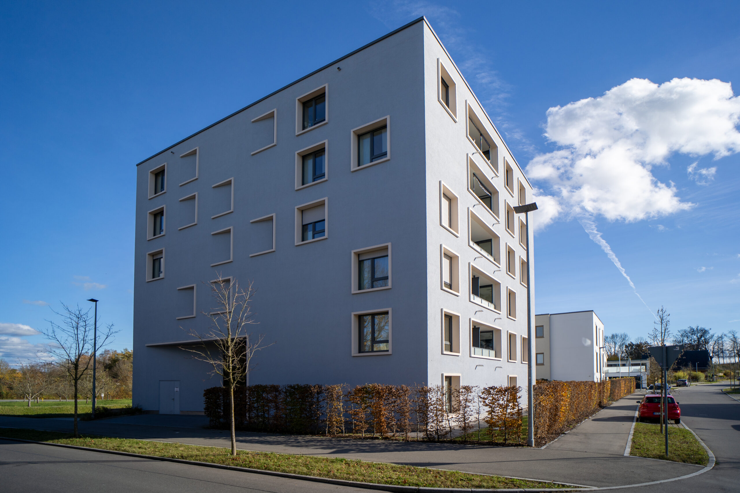 In der Hans-Liebherr-Straße 8 befinden sich 18 Wohneinheiten mit insgesamt 1195 m² Wohnfläche.