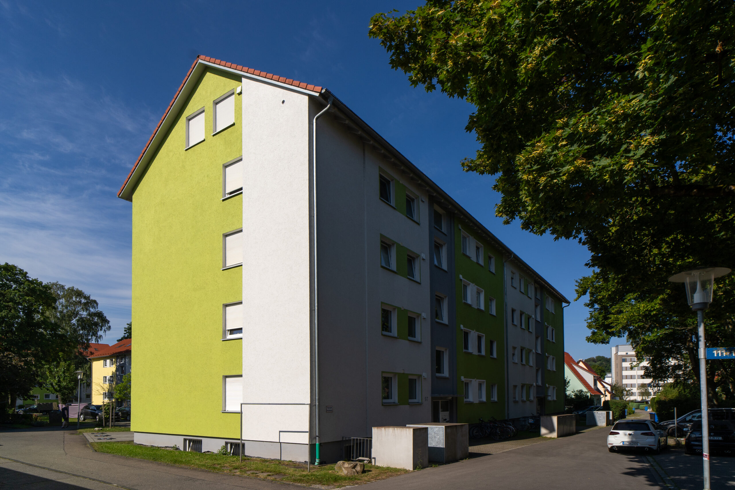 Das Wohnhaus an der Widdersteinstr. 11-23 beinhaltet 40 Wohneinheiten mit insgesamt 2970 m² Wohnfläche.